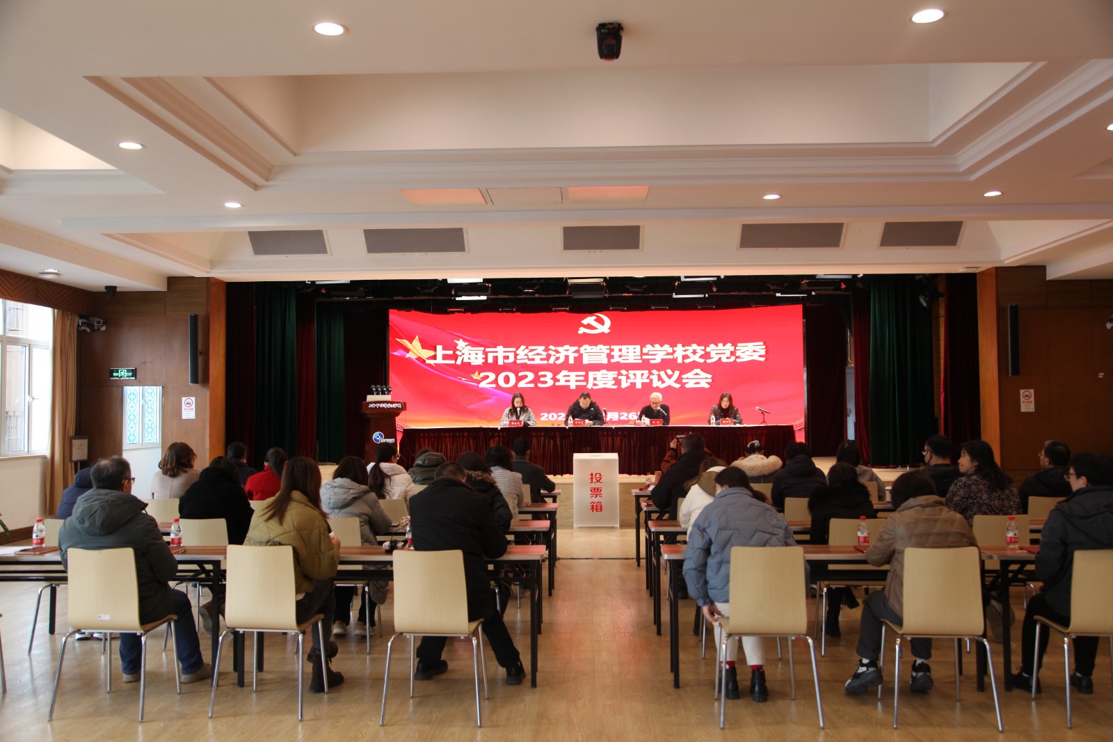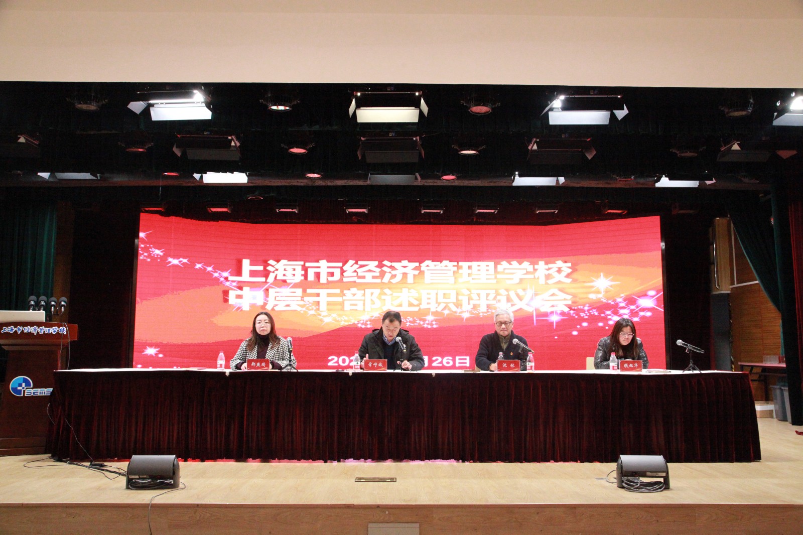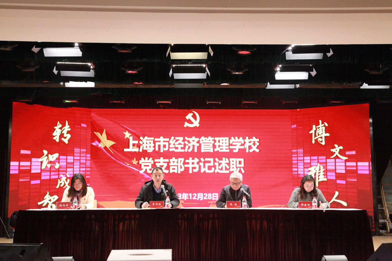 2023年12月26日下午,学校举行党政班子和中层干部述职报告会。上海第二工业大学党委组织部领导、上海市经济管理学校校领导、中层干部、党支部书记、教代会代表出席会议。校党委书记常峥斌代表学校党政进行述职,校领导班子依次结合分管领域工作进行述职。会议由校党委副书记、纪委书记沈林主持。
