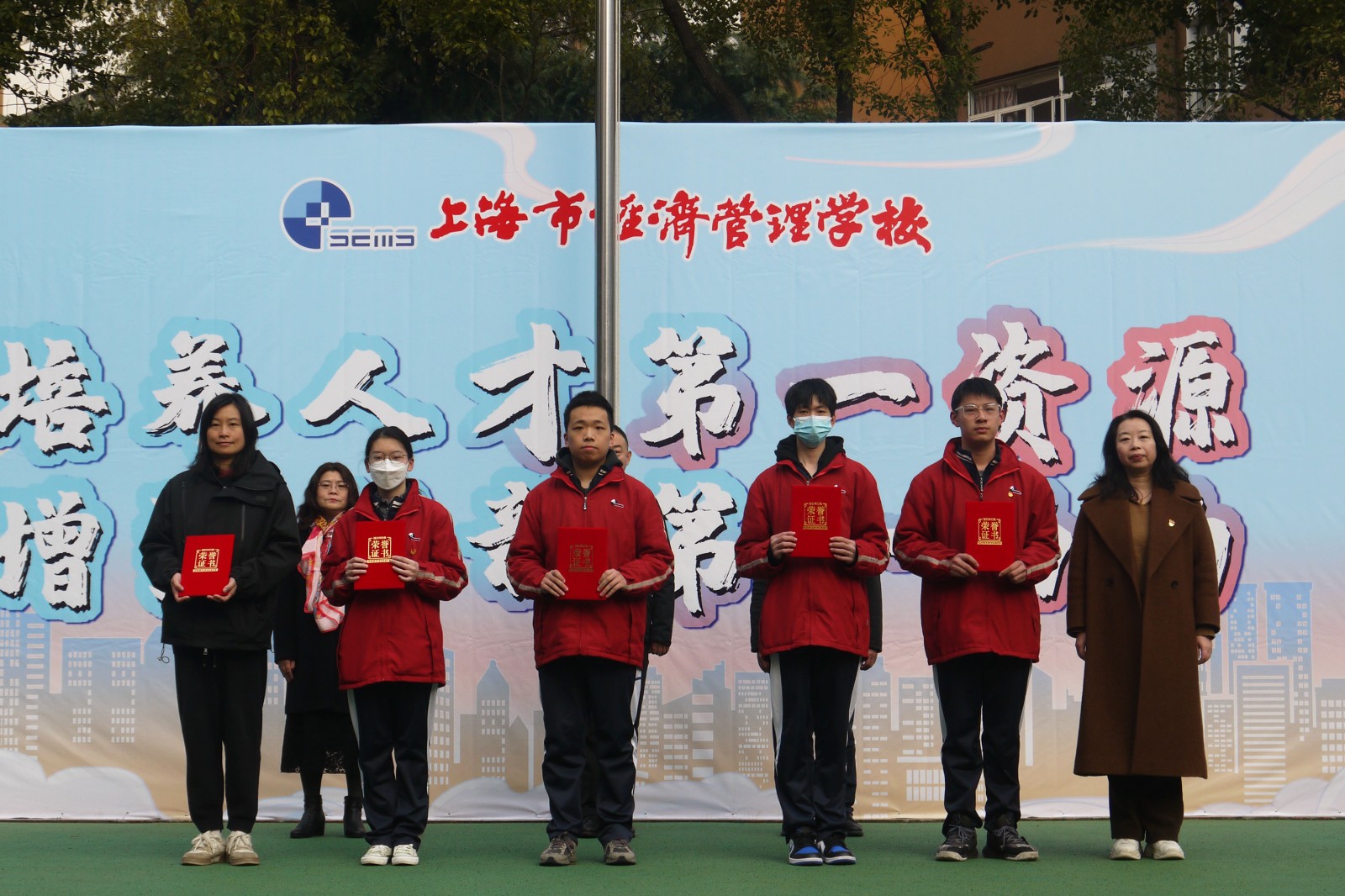 仪式上,学生代表结合学校3月份“学雷锋月”做志愿服务分享。学校先后为在“约战苏河”运动季——无人机趣味赛、第二届“改写匠杯”职业英语写作大赛、上海市大中小学校教师学生“爱我国防”演讲比赛、上海市中等职业教育助育人典型案例评比等赛项中获奖的学生和指导教师进行了颁奖。