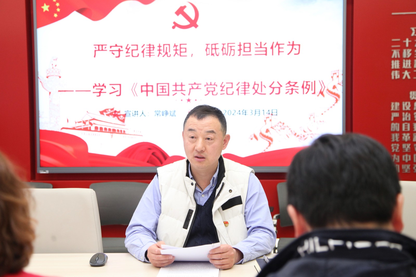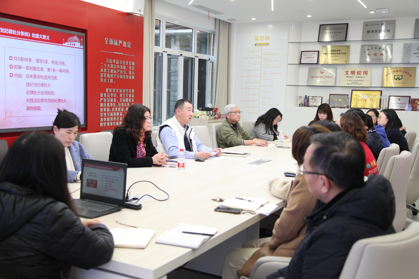 会上,校党委书记常峥斌讲党课。常书记就新修订的《中国共产党纪律处分条例》(以下简称《条例》)进行解读,围绕《条例》修订的重大意义、《条例》修订的主要特点、学习启示三方面内容展开讲解。深刻阐释此次修订“一是促进全党深刻领悟‘两个确立’的决定性意义、坚决做到‘两个维护’的必然要求” “二是贯彻落实习近平新时代中国特色社会主义思想的具体行动” “三是坚持问题导向,用严明的纪律管全党治全党的现实需要” “四是总结从严管党治党经验、实现制度与时俱进的实践要求” ,突出“严明政治纪律和政治规矩” “激励党员干部敢于担当、积极作为” “党性、党风、党纪齐抓共管” “有效促进执纪执法贯通”的特点。最后,常书记强调,全体党员要“坚定理想信念,严守党纪党规”“持续正风肃纪,健全监督机制”“坚守廉洁底线,履职尽责作为”。与会党员干部认真学习,深入探讨,收获颇多。