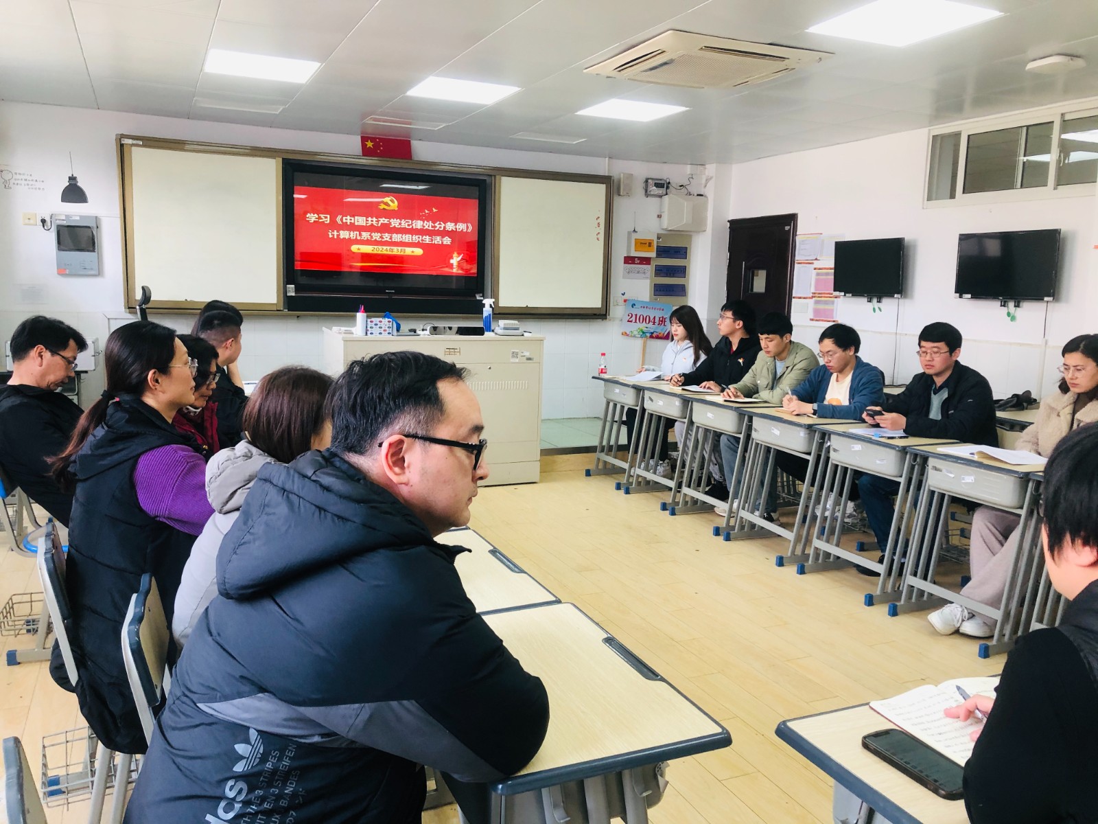 纪律是管党治党的“戒尺”,加强纪律建设是全面从严治党的治本之策。计算机系党支部将继续深入学习《条例》,进一步强化计算机系党支部党员的思想觉悟,以“严的基调、严的措施、严的氛围”纵深推进全面从严治党,为推动学校各项事业高质量发展贡献力量。