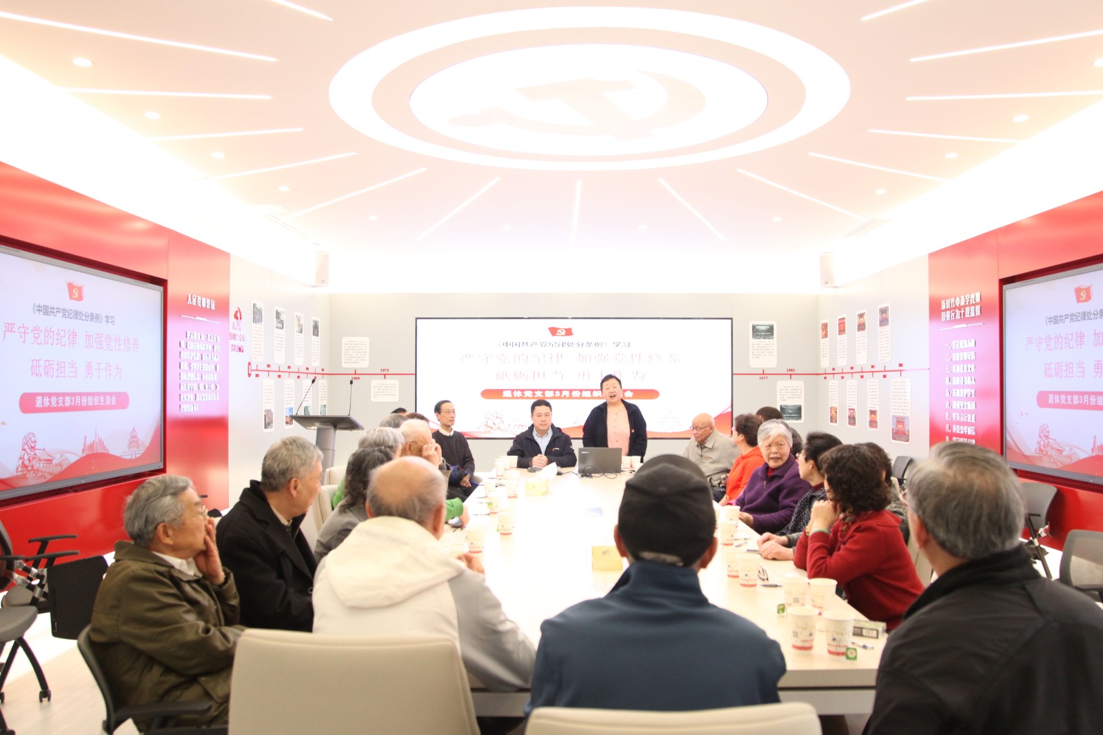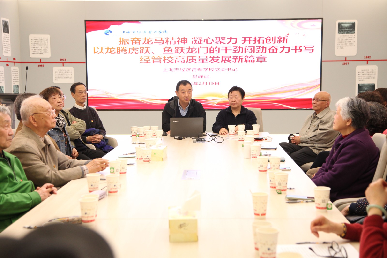 4月1日上午,退休党支部老同志回校开展组织生活会。校党委书记常峥斌作报告。常书记向一直以来关心、支持学校各项工作的老同志们通报学校当前发展情况和发展规划。支部党员同志们集体学习了新修订的《中国共产党纪律处分条例》。本次组织生活会由退休党支部书记林秀聪同志主持。