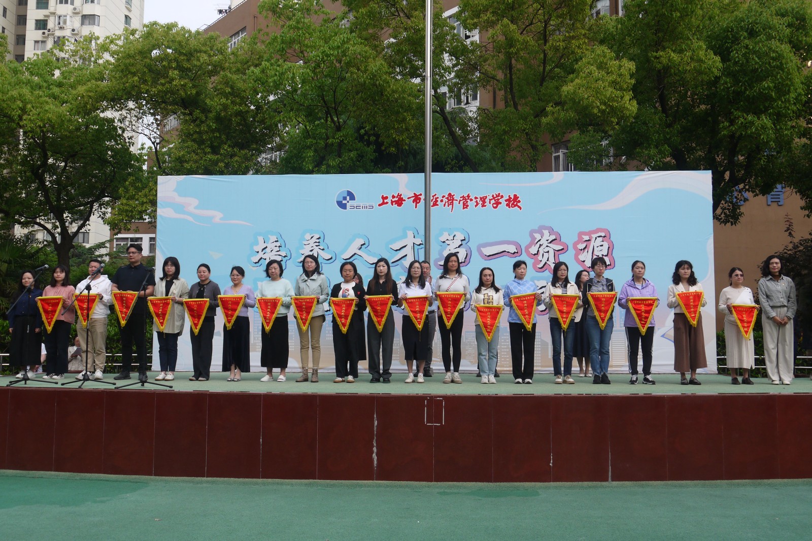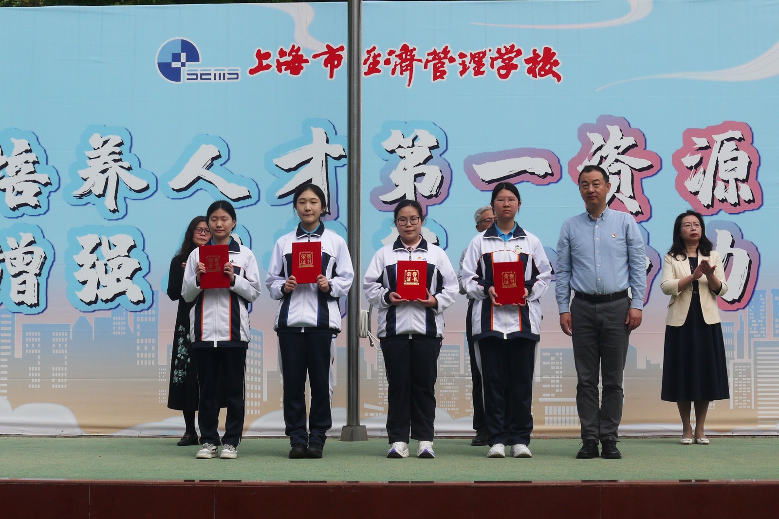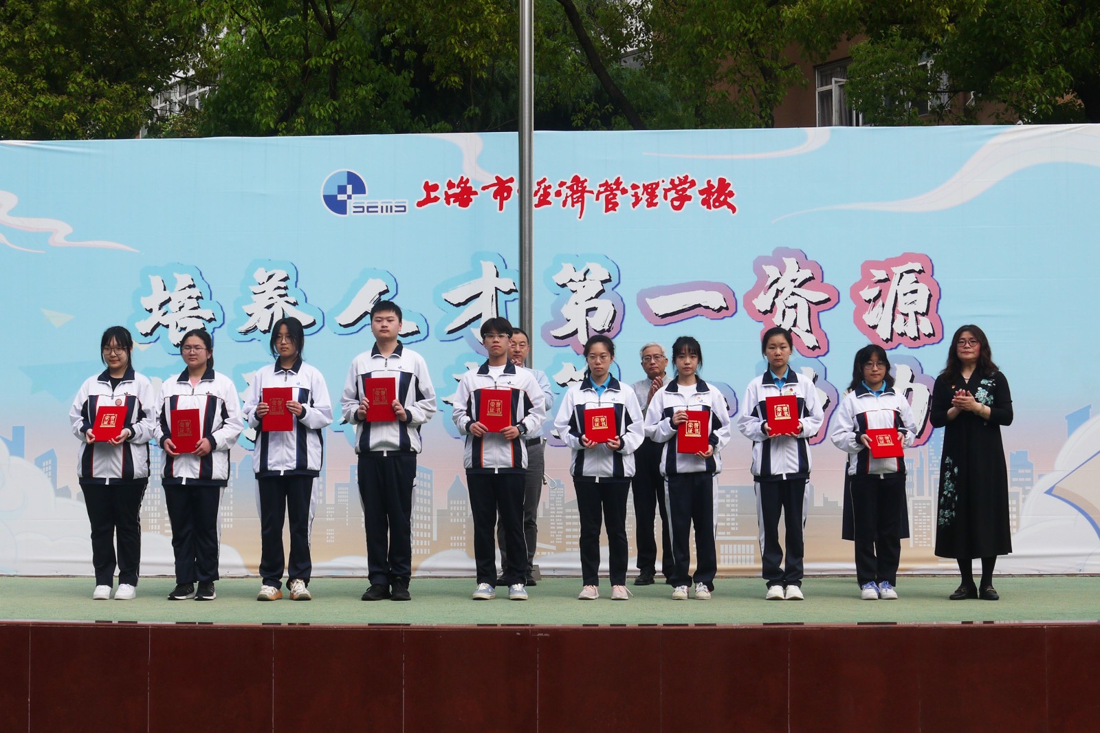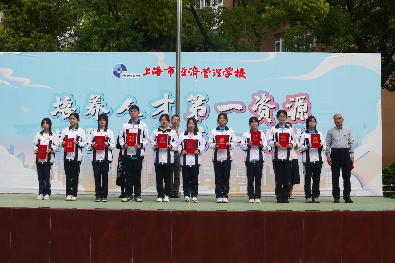 仪式上,学校为2023学年第二学期四月份行为规范示范班、“新学期新计划 学习雷锋好榜样”黑板报评选获奖班级、“传承雷锋精神 践行环保理念”电子小报评比获奖作品和2023年“未来杯”上海市高中阶段学生科技创新大赛获奖的师生进行了颁奖。