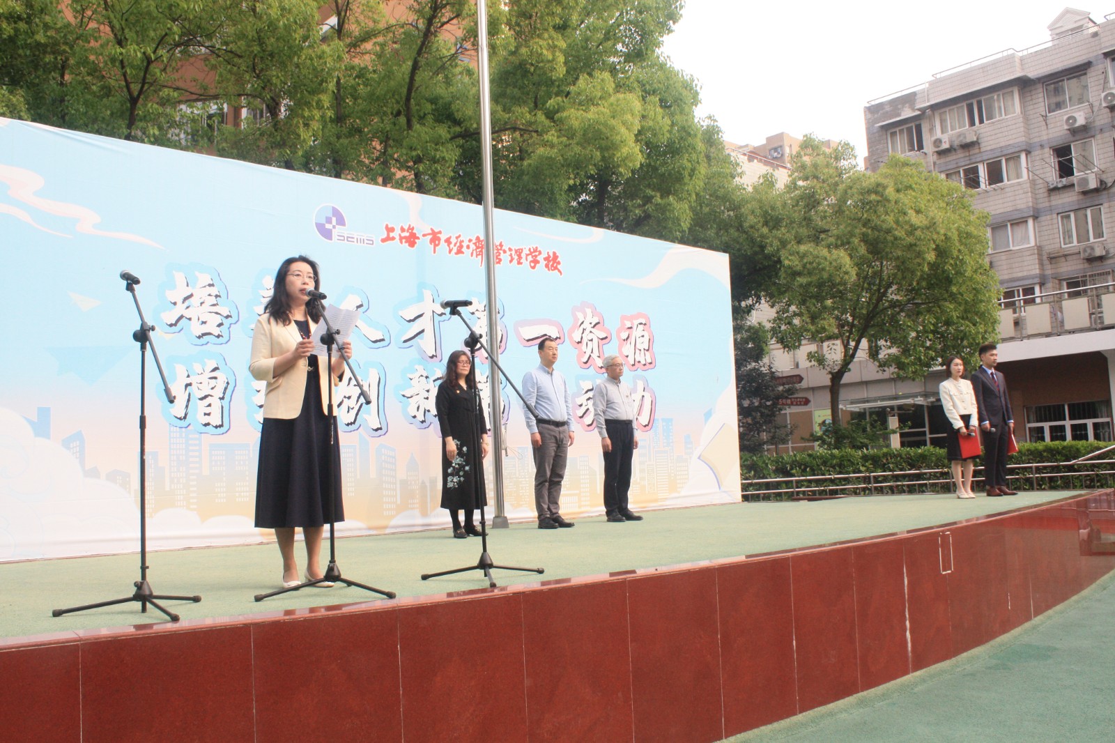 仪式上,副校长郑燕琦讲话。她向全体同学送上了五四青年节的良好祝愿。她希望全体同学能够继承五四精神:一是要高举爱国主义旗帜,勇担时代责任;二是要刻苦学习,树立远大理想;三是要遵规守矩,争创文明学生。她号召同学们发扬五四精神,坚定不移听党的话、跟党走,争做有理想、敢担当、能吃苦、肯奋斗的新时代好青年,在推进强国建设、民族复兴伟业中展现青春作为。