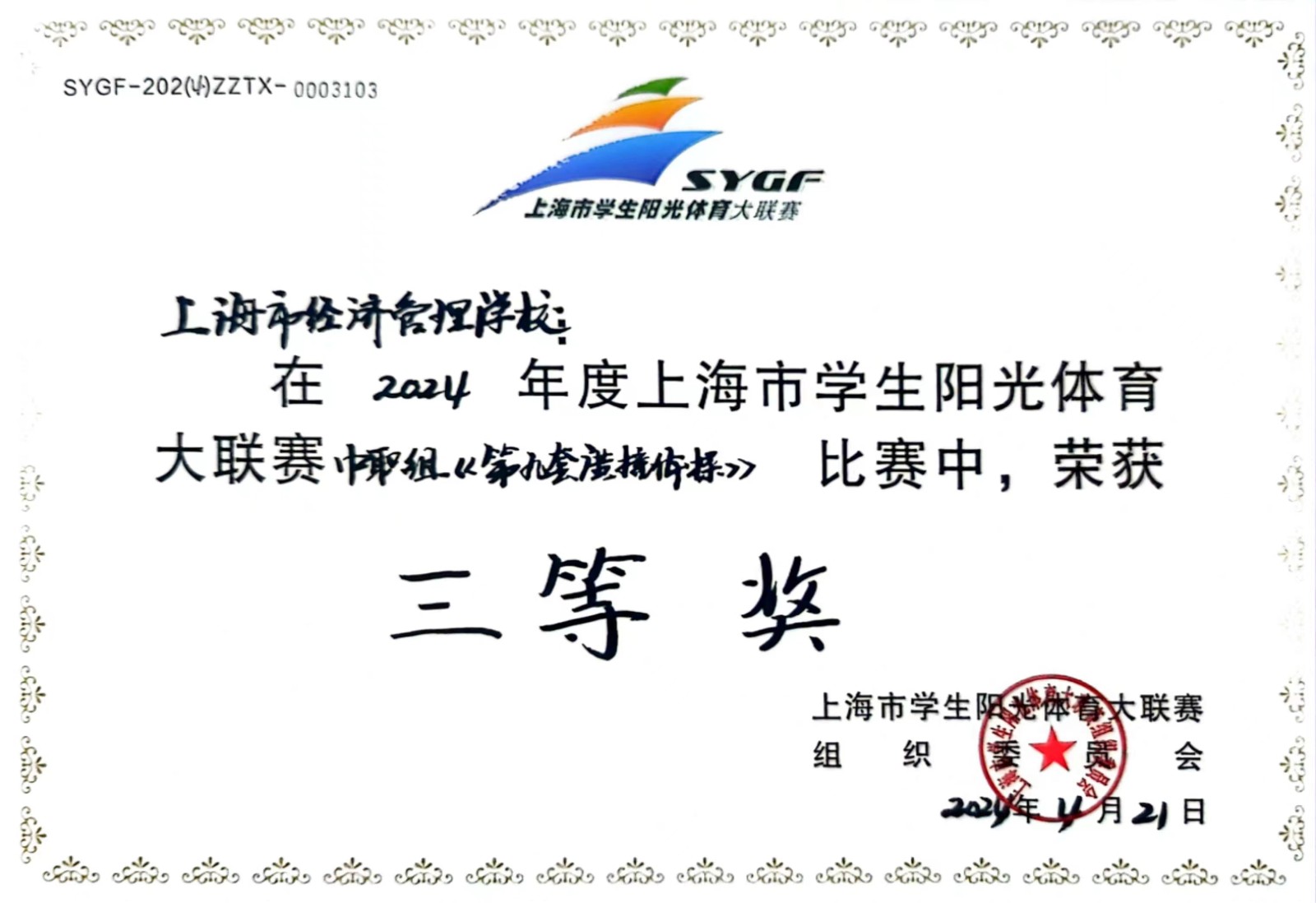 近日,学校在2024年度上海市学生阳光体育大联赛中职组《第九套广播体操》比赛中荣获三等奖。