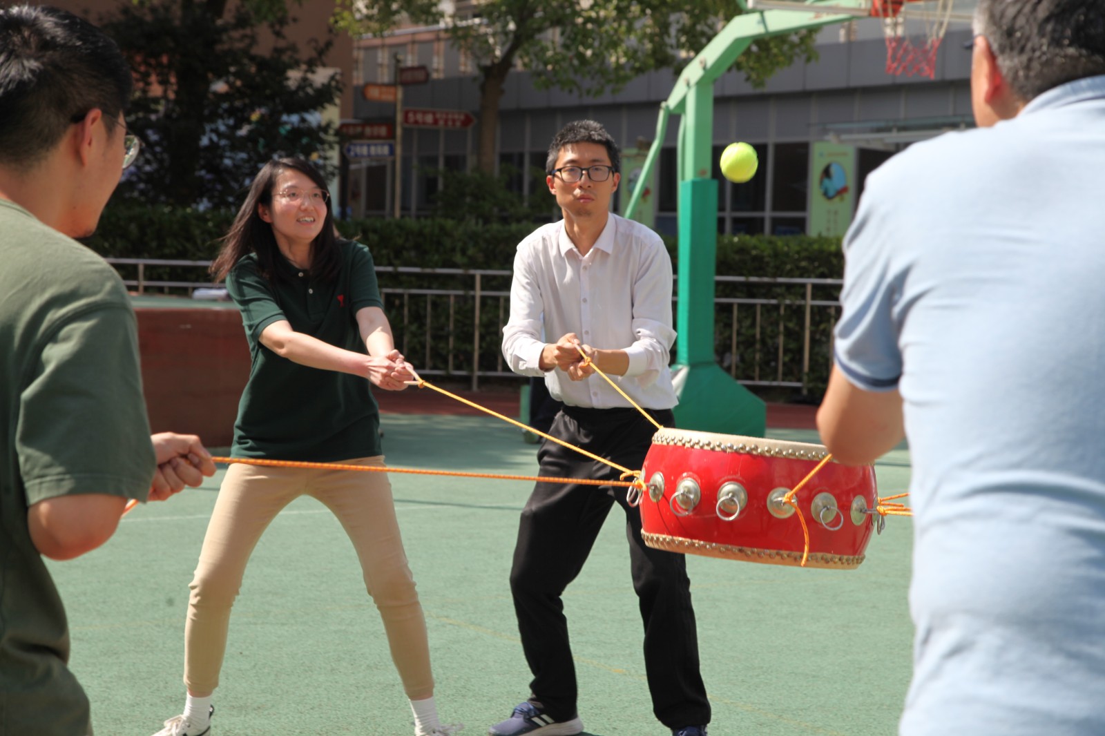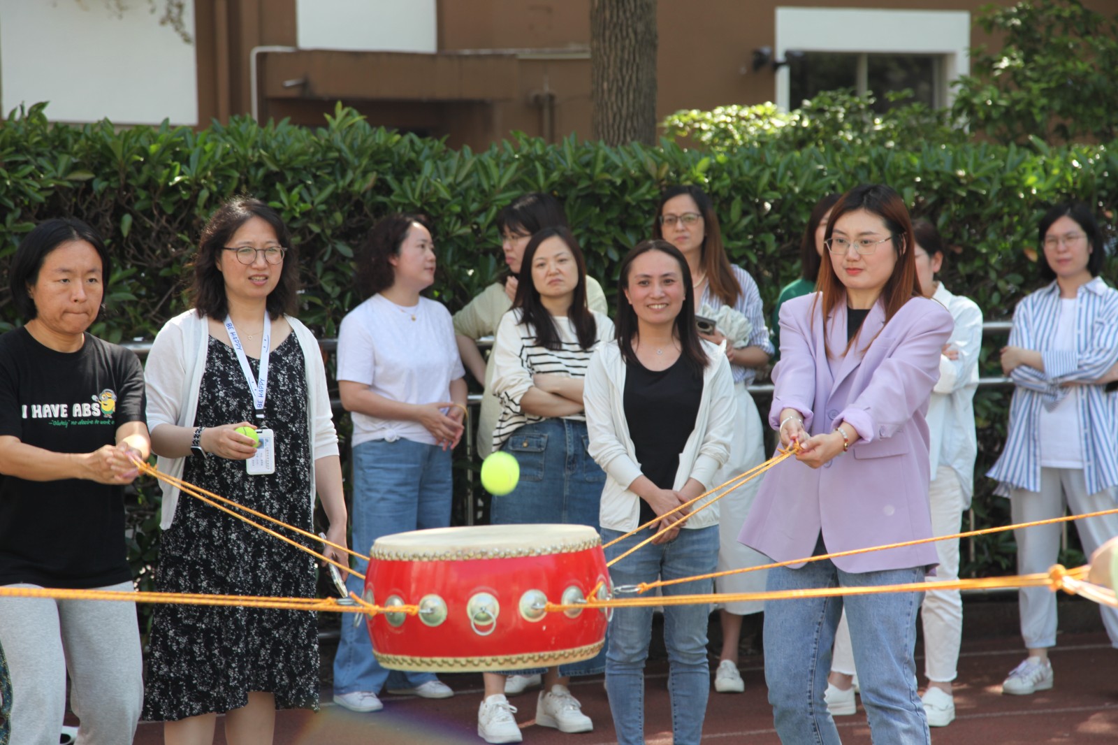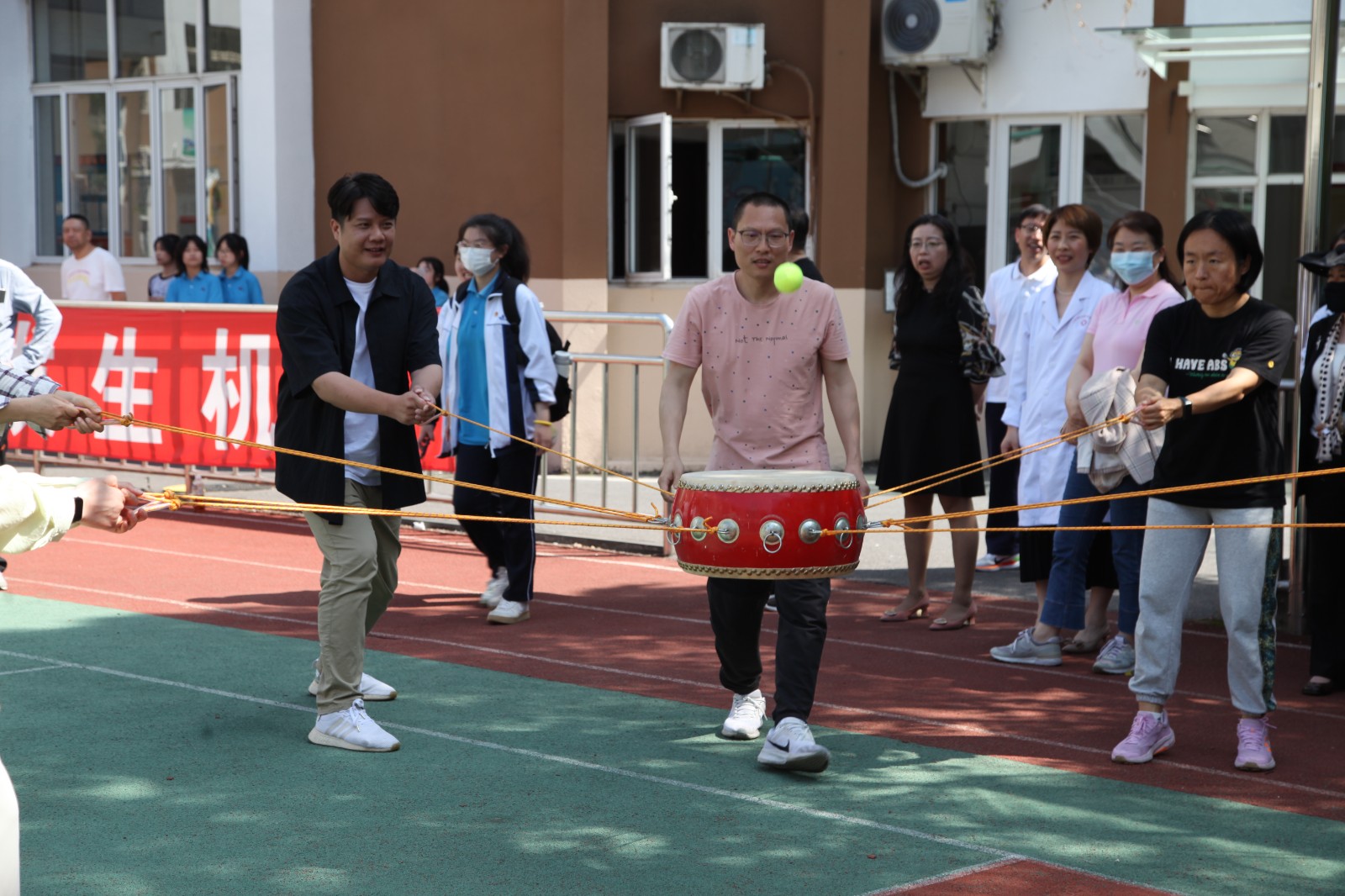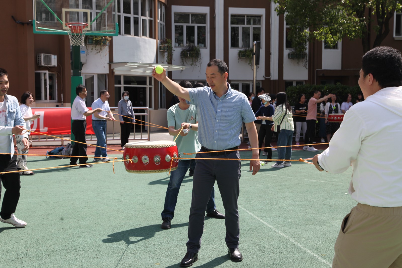 5月24日下午,学校教职工趣味体育系列活动第三场竞赛——“鼓动人心”比赛,在操场隆重举行。校党委书记常峥斌代表学校党政向大家表示祝贺并宣布比赛正式开始。