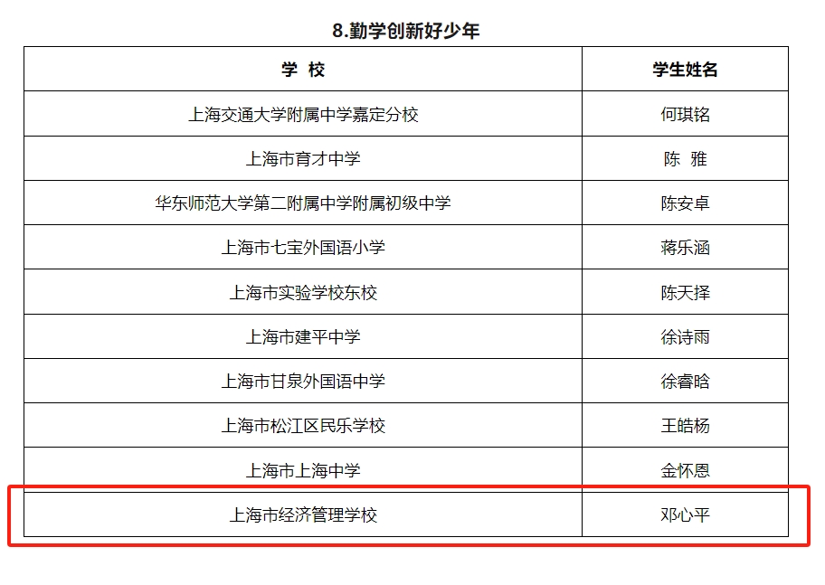 年度上海市中小学(中职校)“新时代好少年(美德少年)”名单公布