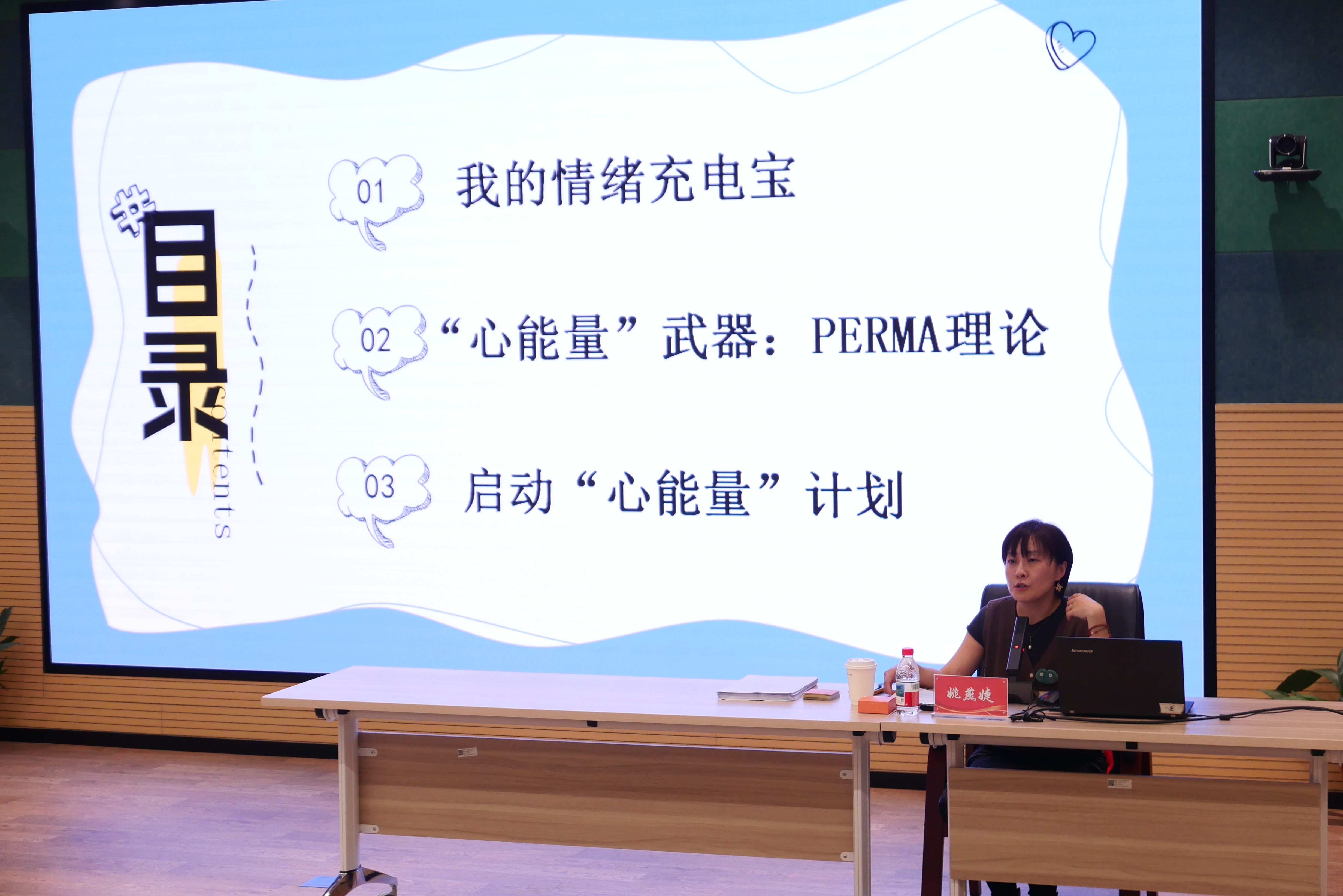 讲座伊始,姚老师通过轻松有趣的互动提问引发学生思考,现场气氛活跃。她系统介绍了积极心理学中的PERMA理论,从积极情绪、全情投入、人际关系、人生意义和成就感五个维度,深入浅出地阐述了提升心理能量的有效途径。在“心能量启动宣言”环节,同学们积极参与,认真写下自己的首个行动承诺,将理论转化为实践。