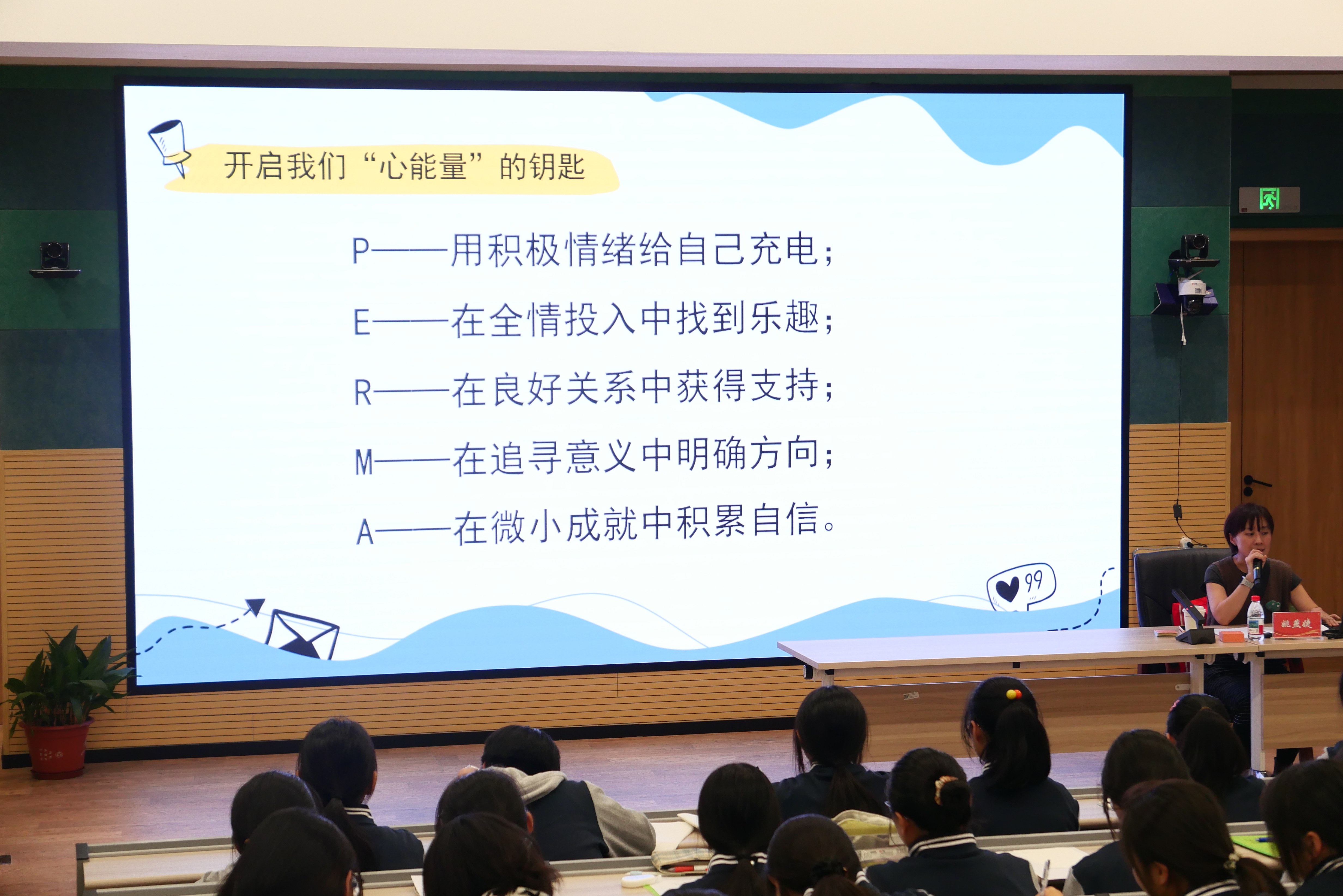 为深入贯彻落实立德树人根本任务,坚持育心与育德相统一,全面提升学校心理育人工作成效,为学生健康成长赋能。10月31日下午,学校在宜昌路校区四楼报告厅成功举办“润慧讲坛·聚力成长”心理健康大讲堂。本次讲座特邀国家二级心理咨询师姚燕婕老师,以“赢在心能量:让积极品质成为你的内在力量”为主题,为师生带来一场内容丰富、互动性强的心理健康专题讲座。