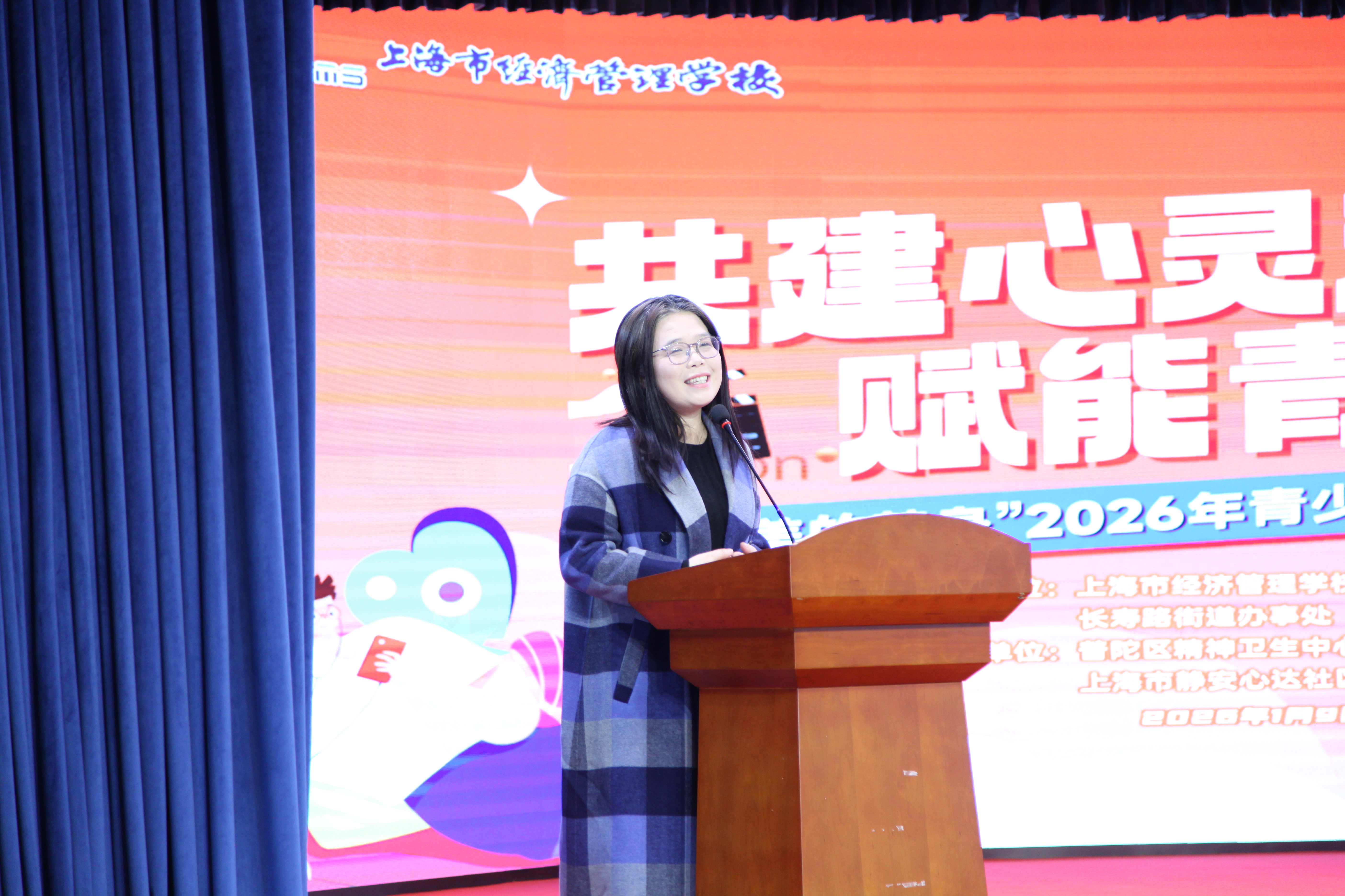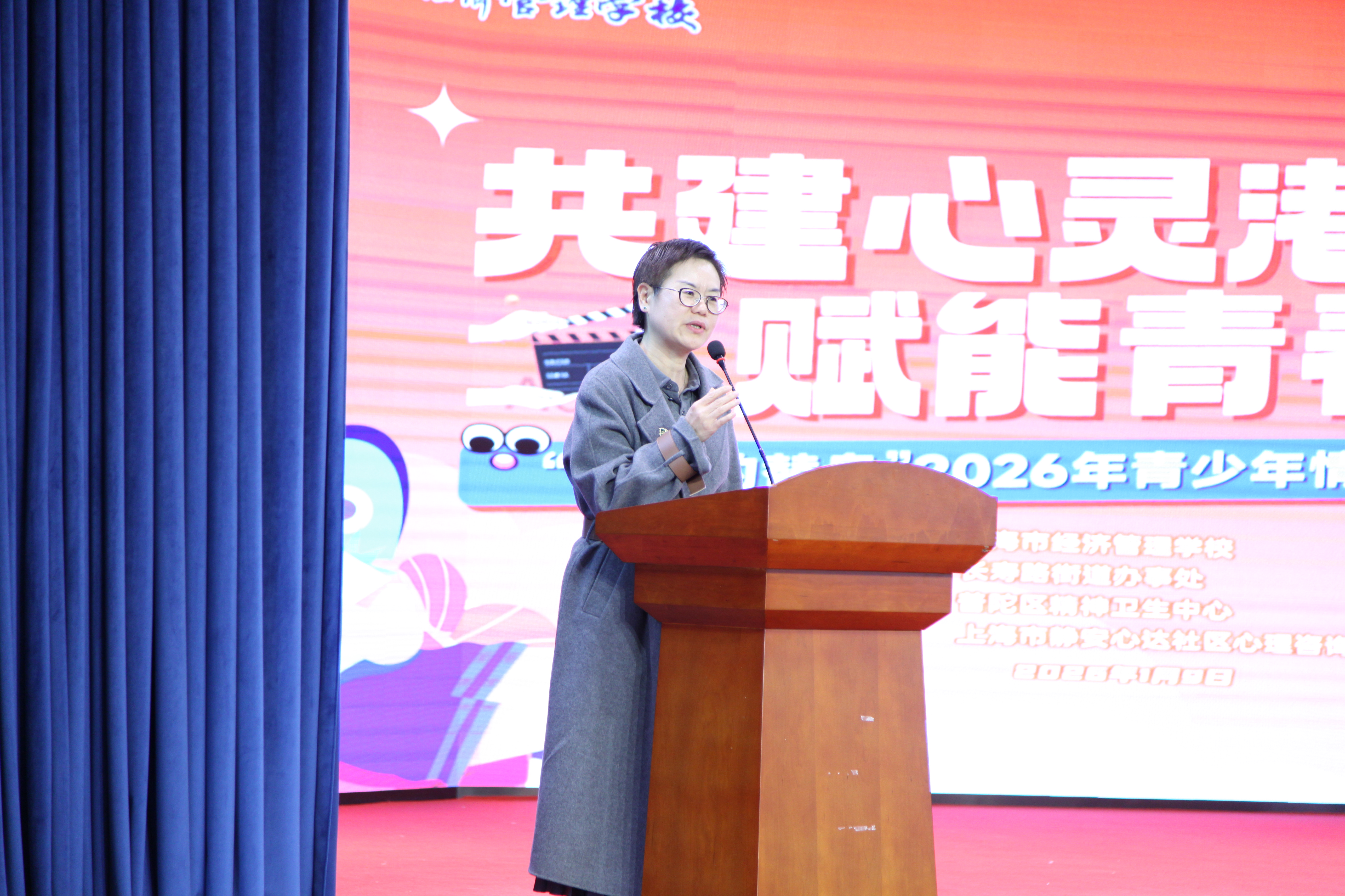 本次活动还特邀上海第二工业大学党委组织部副部长王利、上海健康医学院卫生保健部部长陈建萍、上海信息技术学校副校长张勤、上海商业会计学校副校长龚丽、普陀区精神卫生中心综合办主任施丽燕和长寿路街道办事处社区服务办副主任殷佳菁等领导嘉宾出席。活动紧扣“共建心灵港湾,赋能青春成长”核心主题,以心理剧为载体,精准聚焦青少年情绪管理、自我认同与亲子沟通痛点,深刻传递“AI可辅人生路,温情方育少年心”的认知,呈现了一场兼具思想深度、情感温度与时代意义的心理健康教育盛宴。