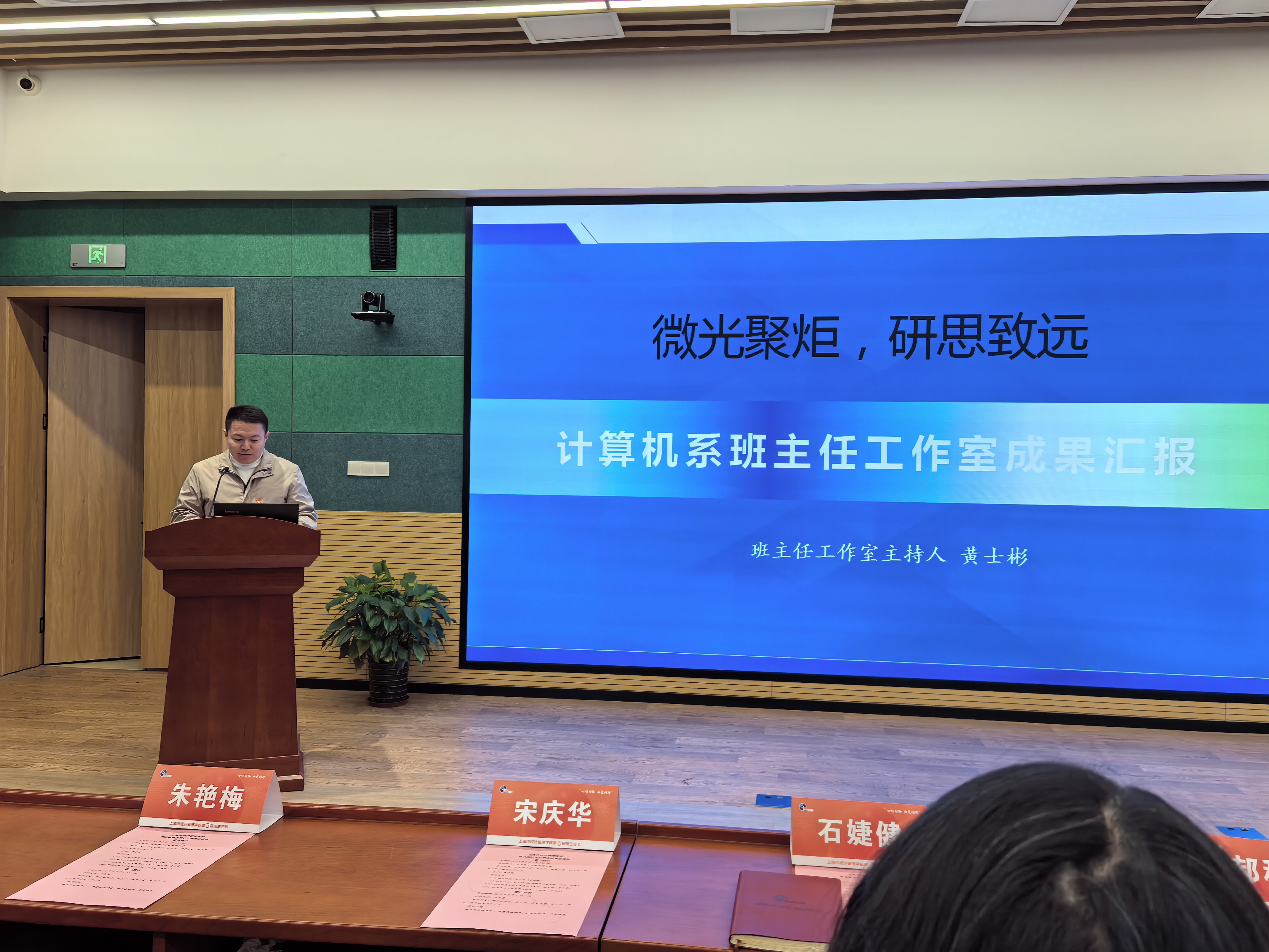 班主任工作室作为班级管理经验沉淀与创新的重要平台,其建设成果备受关注。会上,黄士彬老师以《微光聚炬研思致远》为题代表班主任工作室作专题汇报,从育人理念提炼、特色活动开展、问题解决实践等多个维度,系统分享了工作室的特色活动和阶段性成果,为班主任们提供了可借鉴的班级管理思路与方法。