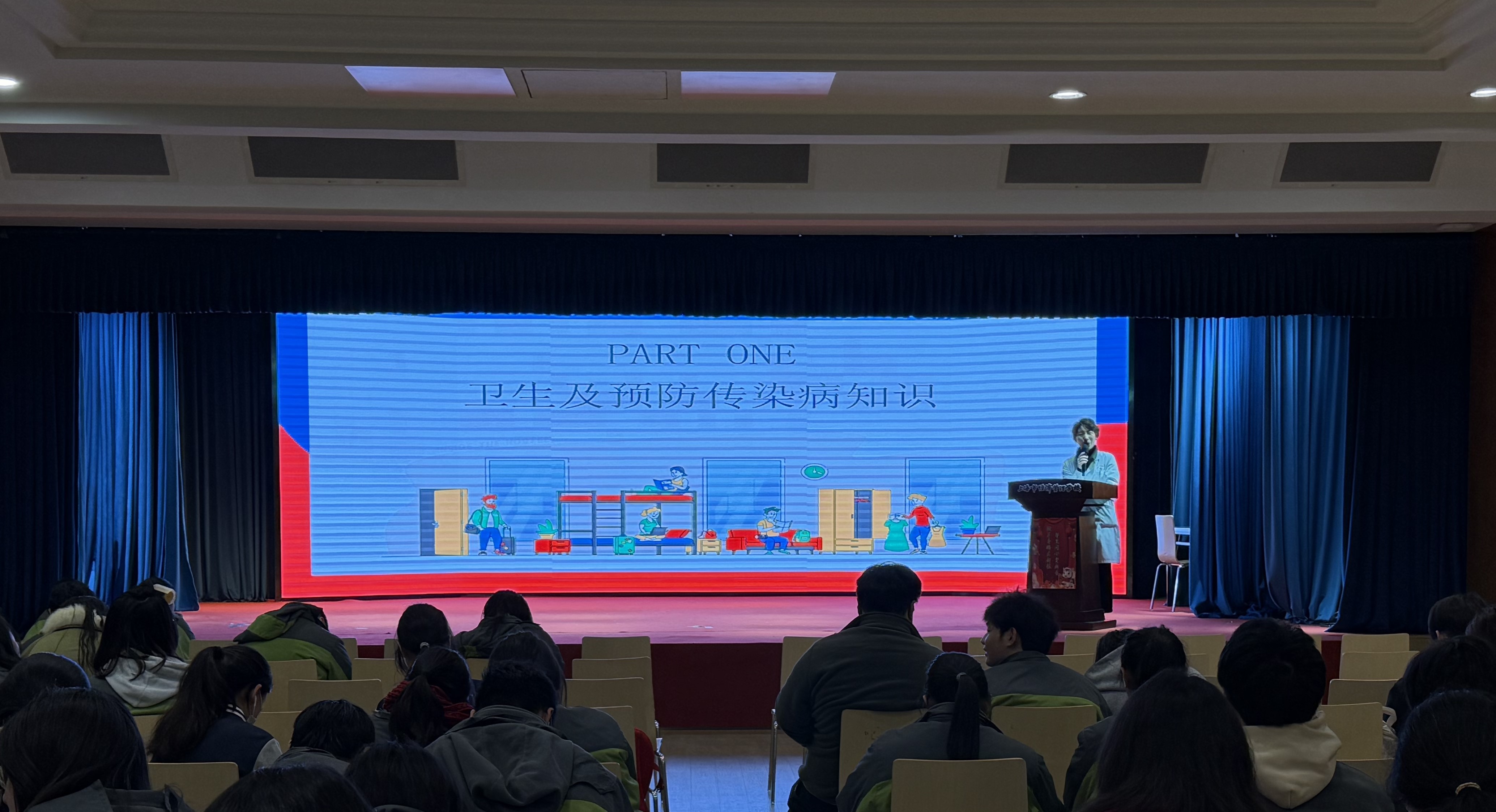 随后,刘淑红老师以卫生及预防传染病知识为主题开展宣讲,结合宿舍生活实际,系统讲解了日常垃圾清理、室内通风、公共区域清洁等卫生规范,并深入浅出地介绍了常见传染病的传播途径与预防措施。刘老师强调,良好的个人卫生习惯是健康的第一道防线,倡导同学们从细节入手,做好环境清洁与自我防护,携手筑牢校园健康屏障。