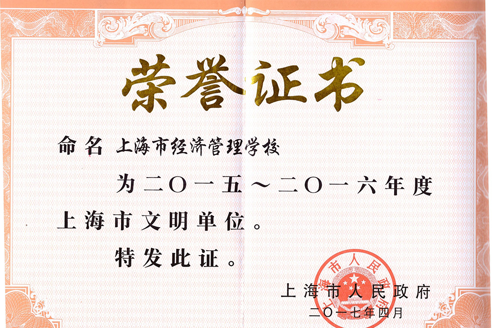 2017.4 学校获评 2015-2016 年度 “上海市文明单位” 荣誉称号
