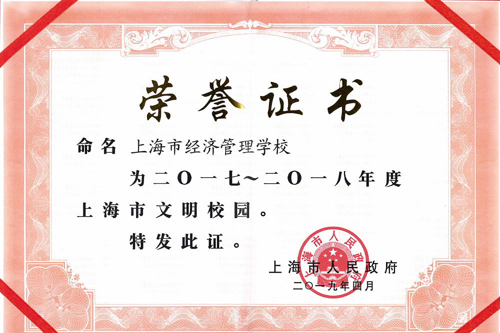 2019.4 学校获评 2017-2018 年度 “上海市文明校园” 荣誉称号