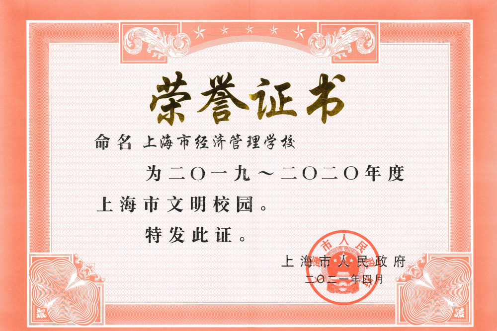 2021.4 学校获评 2019-2020 年度 “上海市文明校园” 荣誉称号