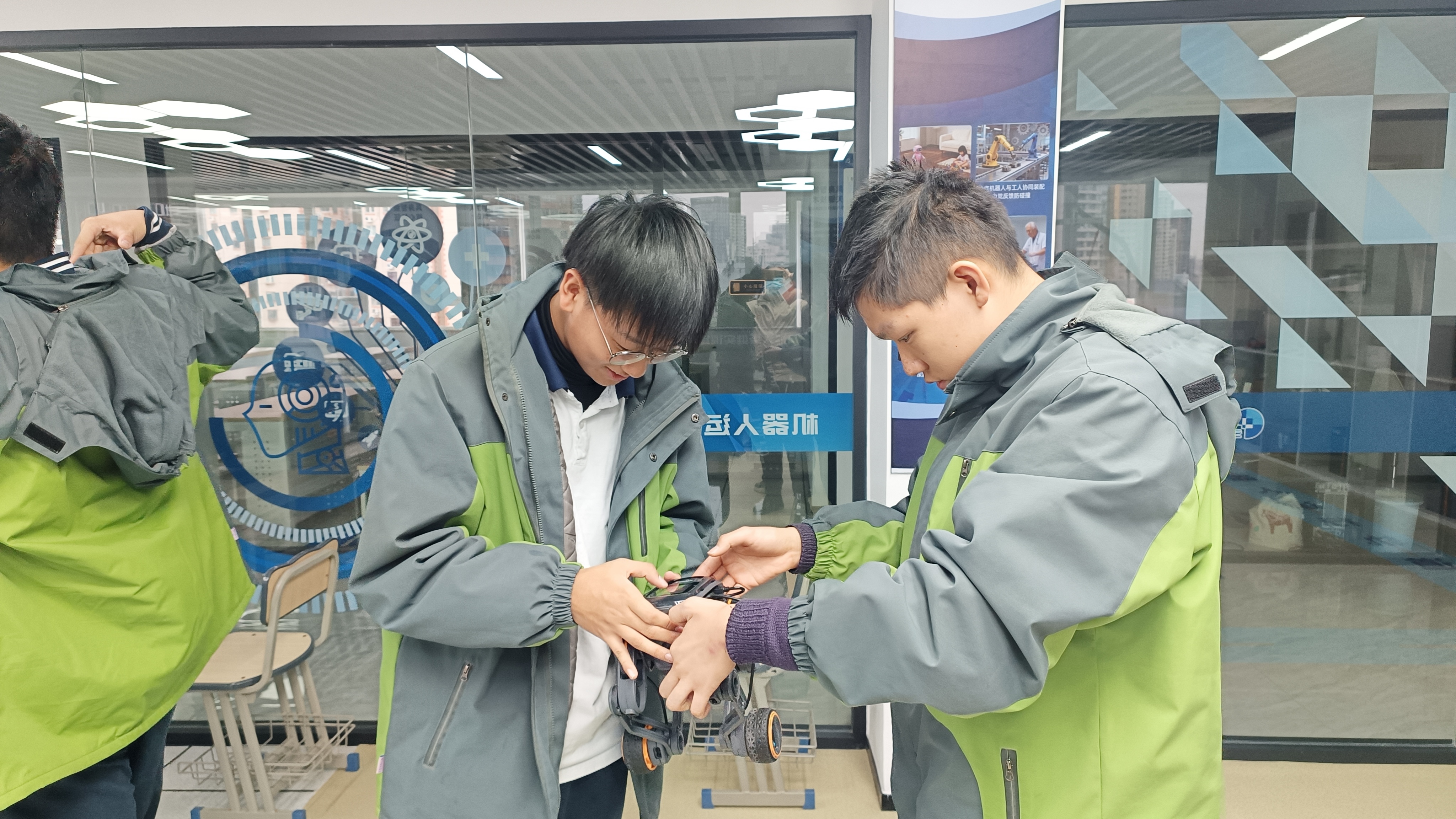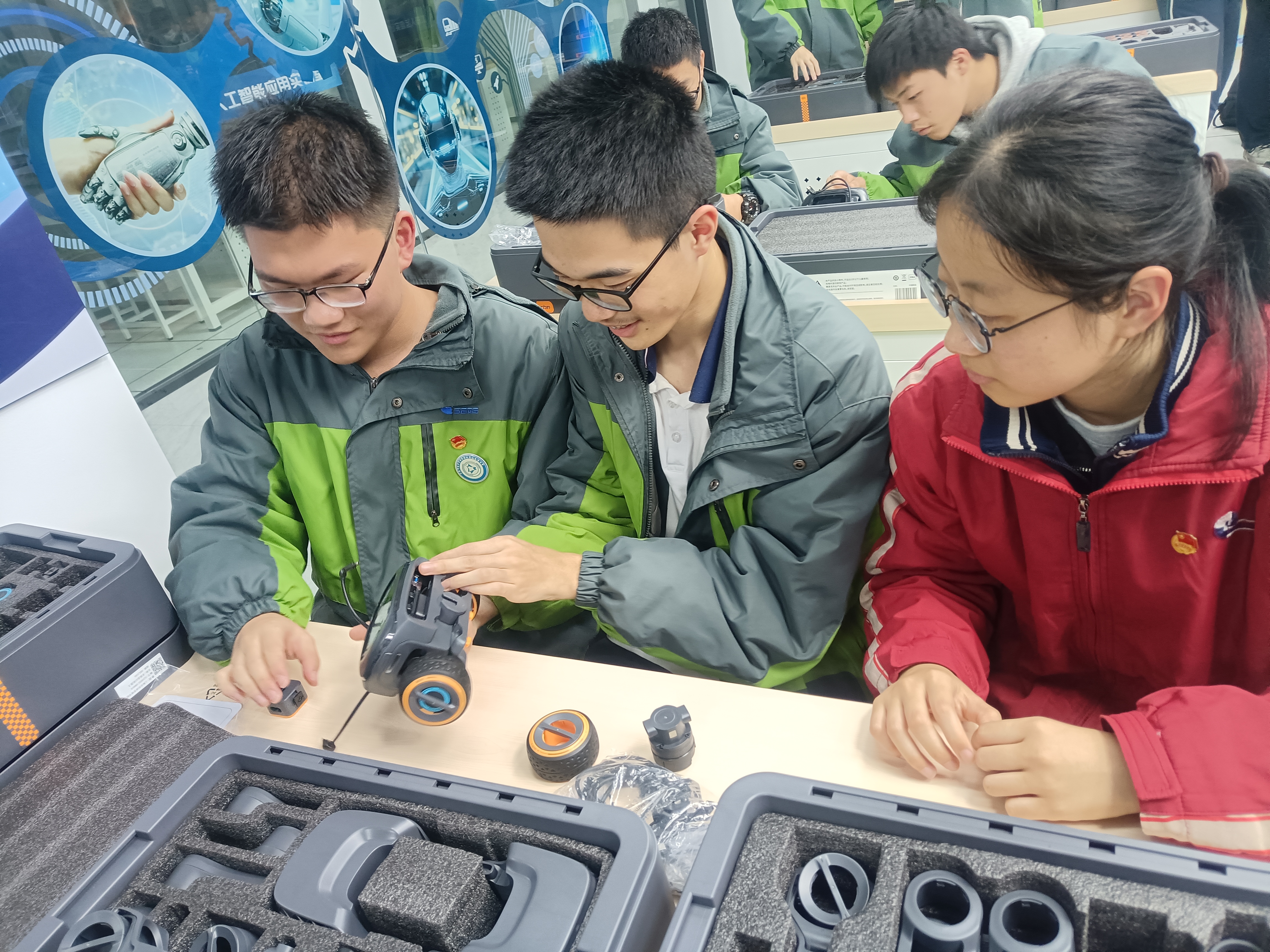 学生们则以小组为单位分工协作,从机械结构组装入手,逐步推进AI编程开发——通过编写路径规划算法、调试语音控制模块、集成图像识别功能,实现机器人自主避障、目标追踪等智能应用。运维实操中,学生们还系统学习了设备校准、故障排查、系统升级等核心技能,不少小组成功完成从机器人组装到AI功能开发、性能测试再到基础运维的全流程实操,实现了“组装能上手、编程能独立、测试能优化、运维能落地”的培训目标。