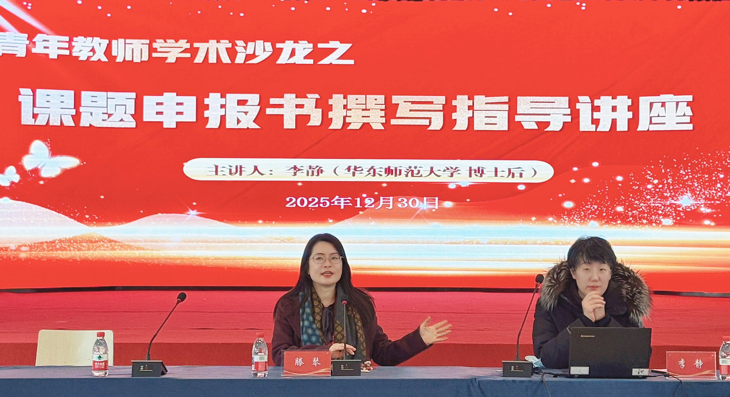 为系统赋能青年教师专业发展,夯实教科研能力根基,12月30日,学校成功举办“青年教师学术沙龙”。本期活动以“课题申报书撰写指导”为主题,由校党委副书记、校长滕琴和上海第二工业大学挂职我校校长助理李静博士联袂主讲,为现场青年教师代表、各教研室及各系骨干教师等带来了一场兼具理论高度与实践深度的专题指导。