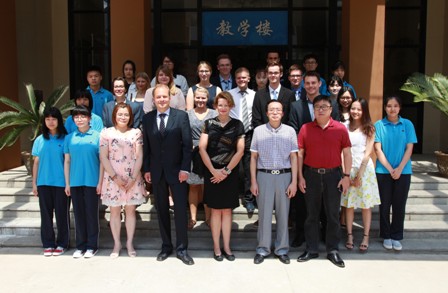 2015年9月6日,德国乌纳汉莎职业学校(Hansa Berufskolleg Unna)校长Marion Kadoch和Thomas Holzhausen带领11名德国学生来校开展为期11天的交流学习活动。这是德国乌纳汉莎职业学校对我校3月到访的回访,是双方合作项目的继续。9月7日我校为他们举行了简短而热烈的欢迎仪式。