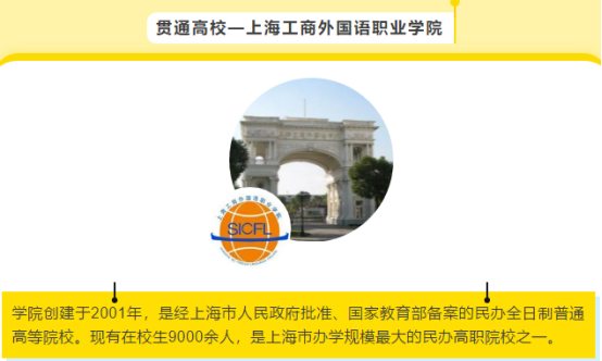 专业特色:与上海工商外国语职业学院合办,致力于引进外国先进教材、课程和证书,培养具有商务英语应用能力、跨文化交际能力、商务实务和跨境电子商务知识的高素质技术技能人才。
